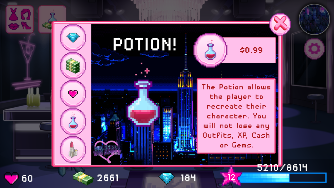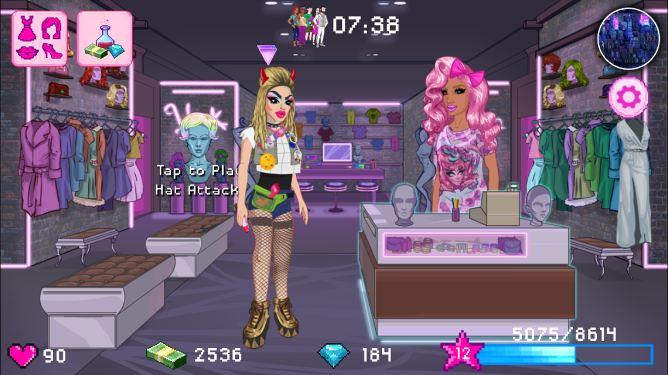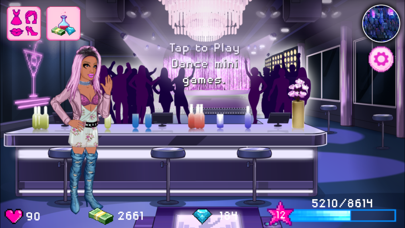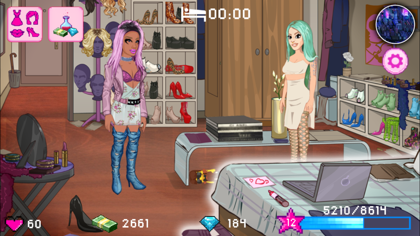 “BibleGirl’s Big Apple,” a mobile game that mixes casual mini-games with light role-playing elements as you follow your character on the road to drag superstardom.